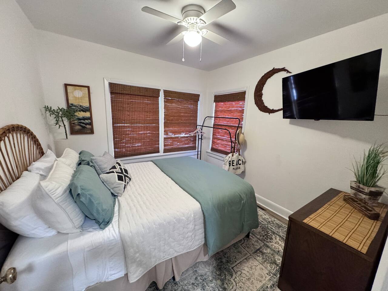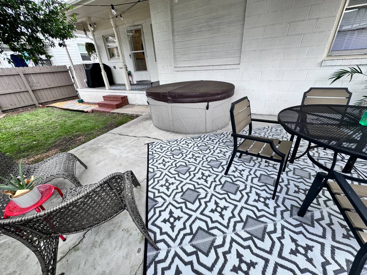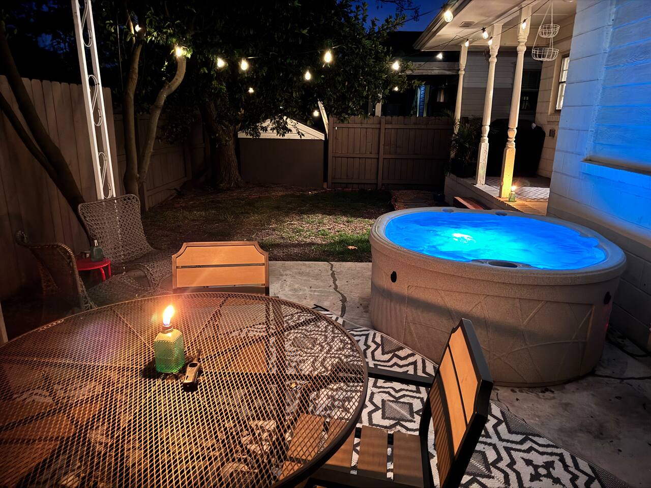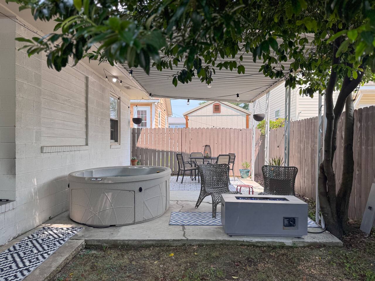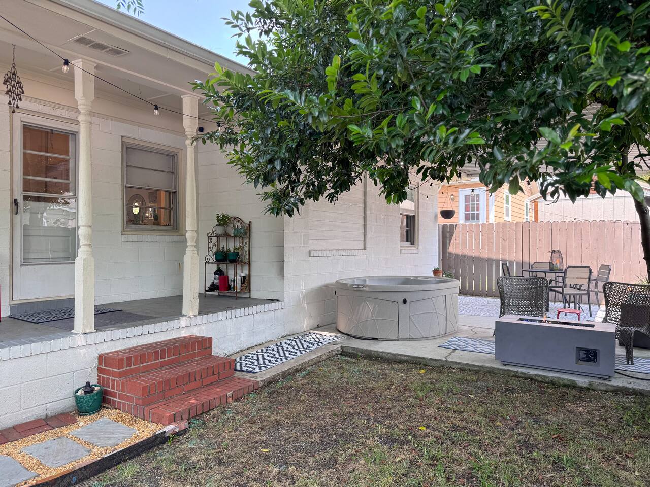Welcome to your relaxing Wilmington retreat — a stylish 2-bed getaway with a private hot tub, fully fenced backyard, and walkable access to Castle Street, Cargo District, and Downtown Riverwalk. Guests love the cozy vibe, thoughtful touches, well-stocked kitchen, and ultra-comfortable beds. The home is ideal for couples, friends’ trips, and pet-friendly travelers looking for comfort and convenience. What You’ll Love *Private backyard oasis with hot tub, bistro lights, grill, fire pit, and seating *Plush king canopy bed + cozy queen bed with plenty of pillows and blankets *Fully stocked kitchen with spices, blender, baking tools, coffee bar, and more *Retro dinette for meals, work, or game nights *TVs in both bedrooms and living room, Bluetooth speaker, books, yoga mats *Dedicated workspace for remote work or getting ready *Walking distance to restaurants, cafés, shops, and the Riverwalk *Quick 15–20 minute drive to Wrightsville Beach and area attractions Neighborhood Notes Our home is in Southside ILM — an urban, up-and-coming area where many guests enjoy daytime walks to Castle Street or the Riverwalk. As in any city neighborhood, standard awareness after dark is recommended. Outdoor cameras, motion lights, and smart entry provide added peace of mind. Whether you’re here for a beach weekend, concert, food tour, or just a cozy getaway with your pup, this cottage is a comfortable, stylish home base for your Wilmington stay.