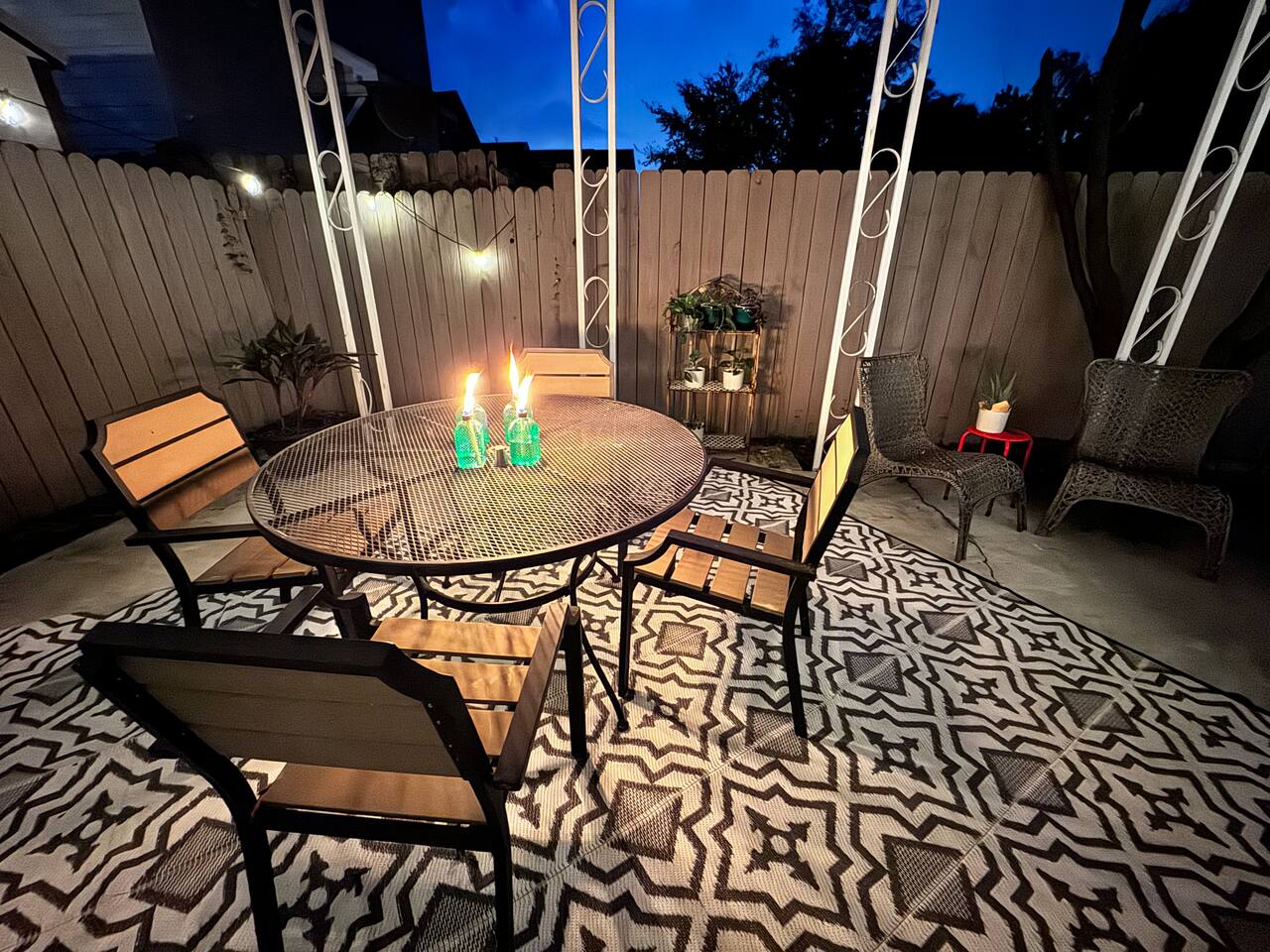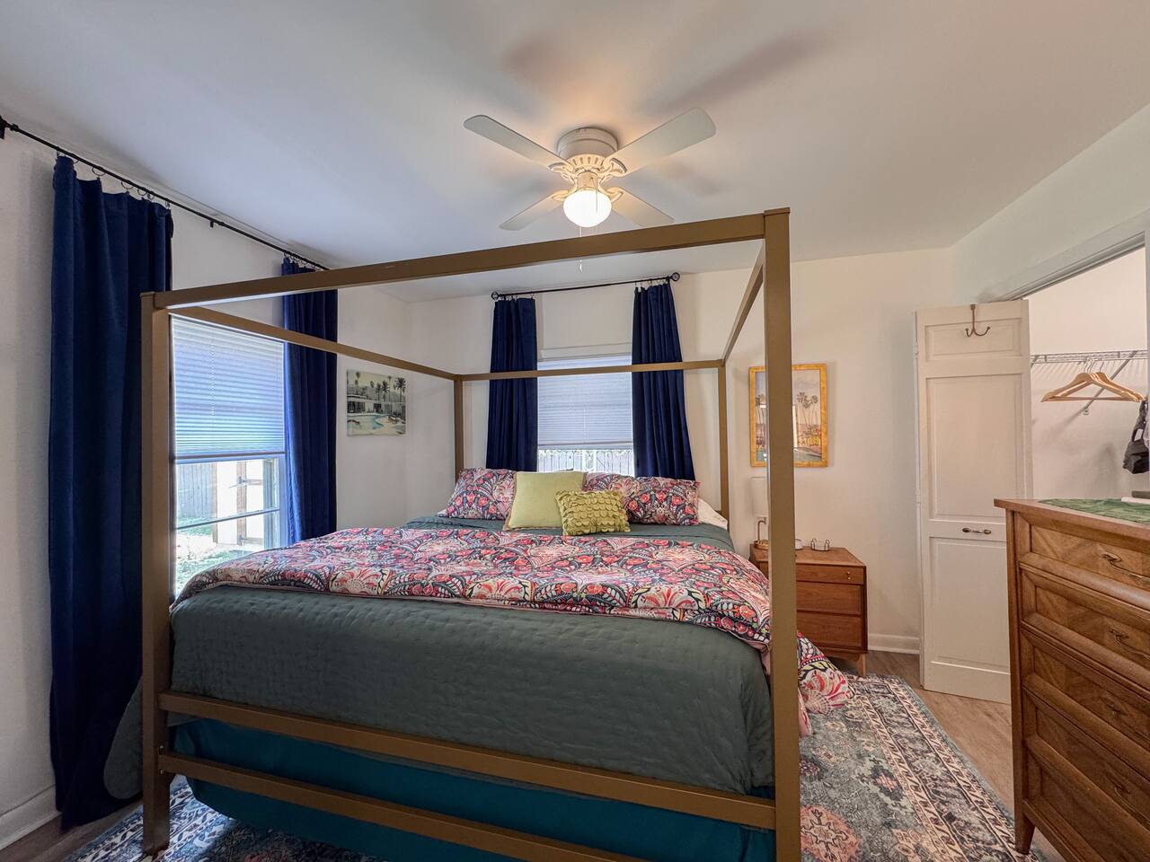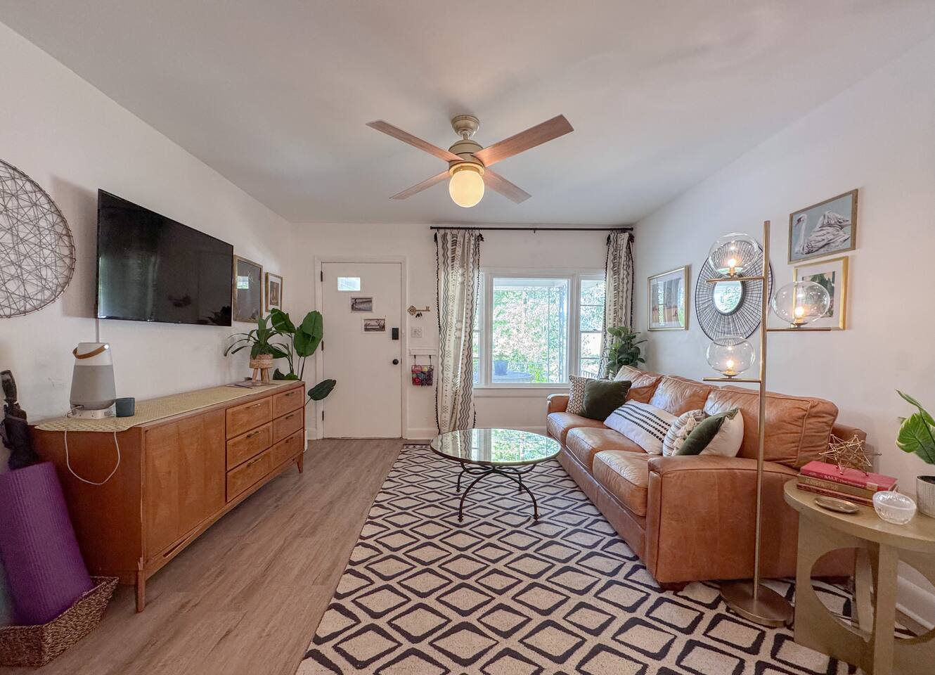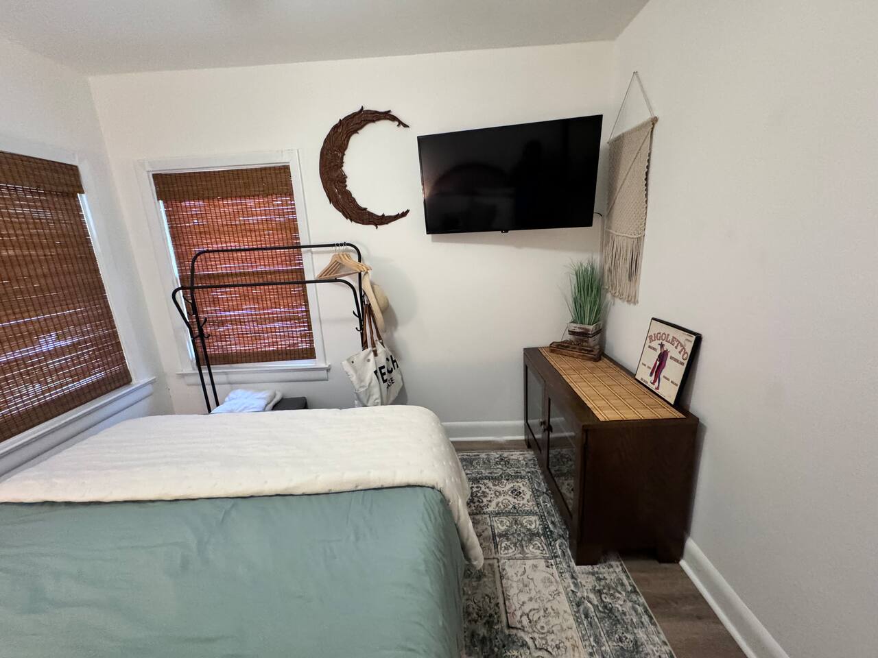 Welcome to your relaxing Wilmington retreat — a stylish 2-bed getaway with a private hot tub, fully fenced backyard, and walkable access to Castle Street, Cargo District, and Downtown Riverwalk. Guests love the cozy vibe, thoughtful touches, well-stocked kitchen, and ultra-comfortable beds. The home is ideal for couples, friends’ trips, and pet-friendly travelers looking for comfort and convenience. What You’ll Love *Private backyard oasis with hot tub, bistro lights, grill, fire pit, and seating *Plush king canopy bed + cozy queen bed with plenty of pillows and blankets *Fully stocked kitchen with spices, blender, baking tools, coffee bar, and more *Retro dinette for meals, work, or game nights *TVs in both bedrooms and living room, Bluetooth speaker, books, yoga mats *Dedicated workspace for remote work or getting ready *Walking distance to restaurants, cafés, shops, and the Riverwalk *Quick 15–20 minute drive to Wrightsville Beach and area attractions Neighborhood Notes Our home is in Southside ILM — an urban, up-and-coming area where many guests enjoy daytime walks to Castle Street or the Riverwalk. As in any city neighborhood, standard awareness after dark is recommended. Outdoor cameras, motion lights, and smart entry provide added peace of mind. Whether you’re here for a beach weekend, concert, food tour, or just a cozy getaway with your pup, this cottage is a comfortable, stylish home base for your Wilmington stay.