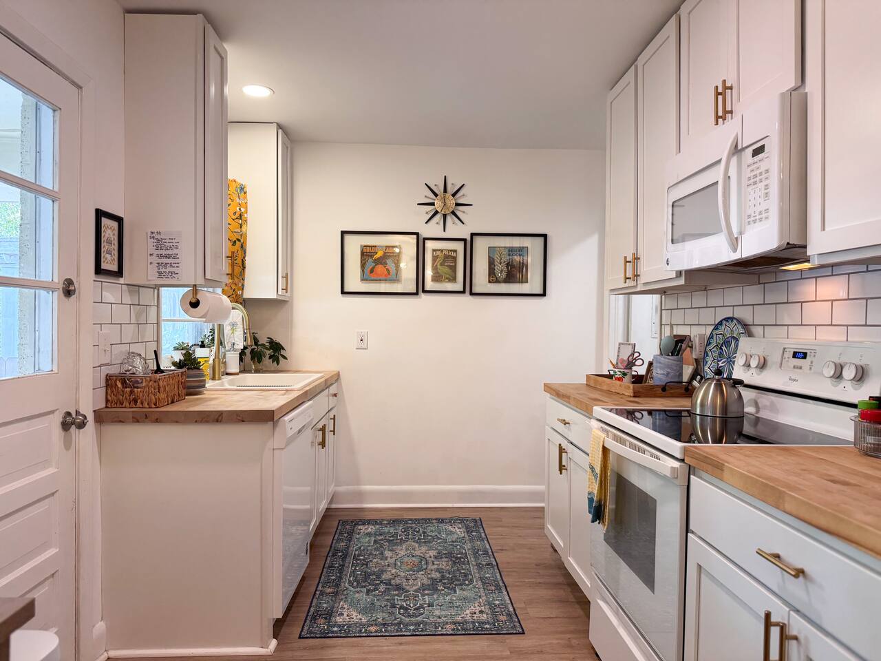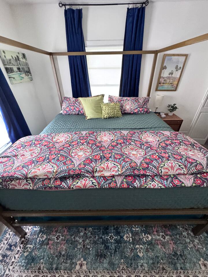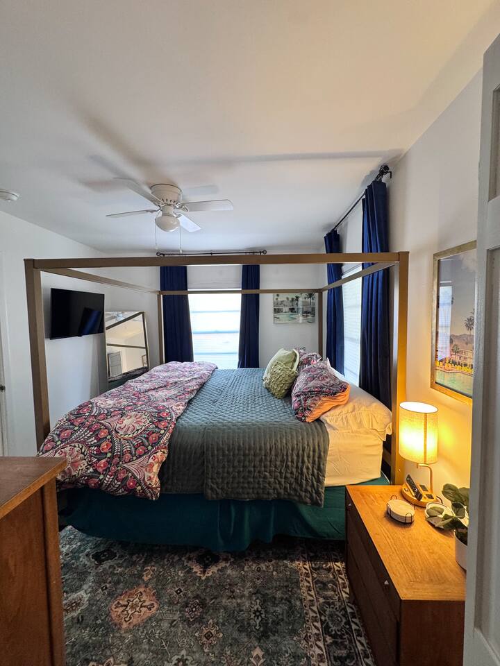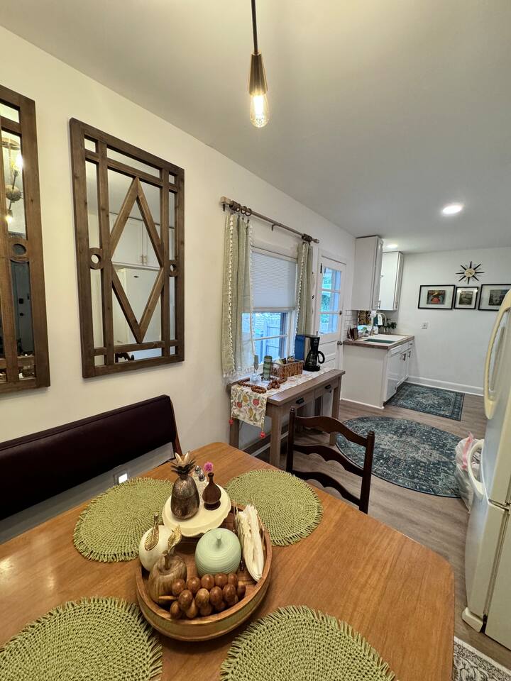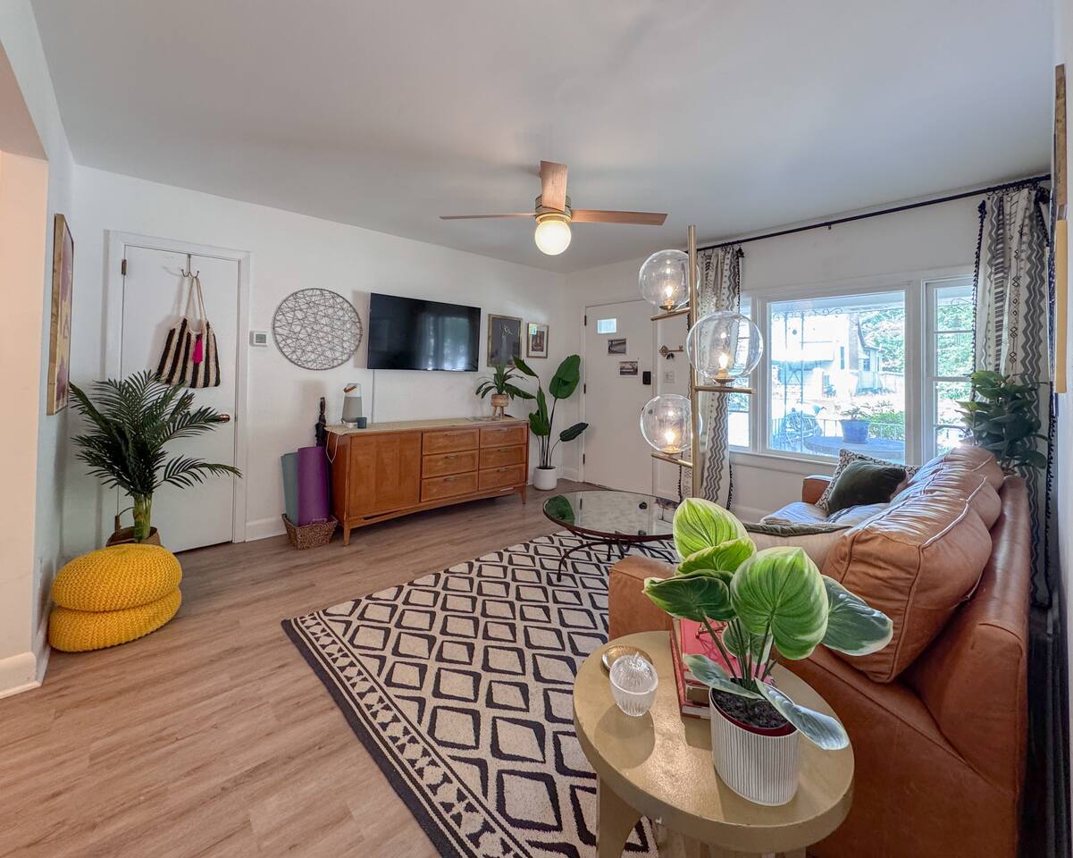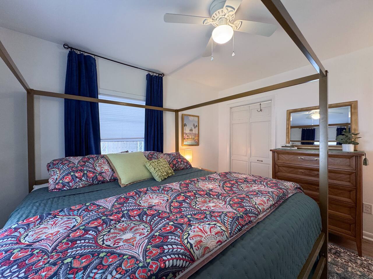 Welcome to your relaxing Wilmington retreat — a stylish 2-bed getaway with a private hot tub, fully fenced backyard, and walkable access to Castle Street, Cargo District, and Downtown Riverwalk. Guests love the cozy vibe, thoughtful touches, well-stocked kitchen, and ultra-comfortable beds. The home is ideal for couples, friends’ trips, and pet-friendly travelers looking for comfort and convenience. What You’ll Love *Private backyard oasis with hot tub, bistro lights, grill, fire pit, and seating *Plush king canopy bed + cozy queen bed with plenty of pillows and blankets *Fully stocked kitchen with spices, blender, baking tools, coffee bar, and more *Retro dinette for meals, work, or game nights *TVs in both bedrooms and living room, Bluetooth speaker, books, yoga mats *Dedicated workspace for remote work or getting ready *Walking distance to restaurants, cafés, shops, and the Riverwalk *Quick 15–20 minute drive to Wrightsville Beach and area attractions Neighborhood Notes Our home is in Southside ILM — an urban, up-and-coming area where many guests enjoy daytime walks to Castle Street or the Riverwalk. As in any city neighborhood, standard awareness after dark is recommended. Outdoor cameras, motion lights, and smart entry provide added peace of mind. Whether you’re here for a beach weekend, concert, food tour, or just a cozy getaway with your pup, this cottage is a comfortable, stylish home base for your Wilmington stay.